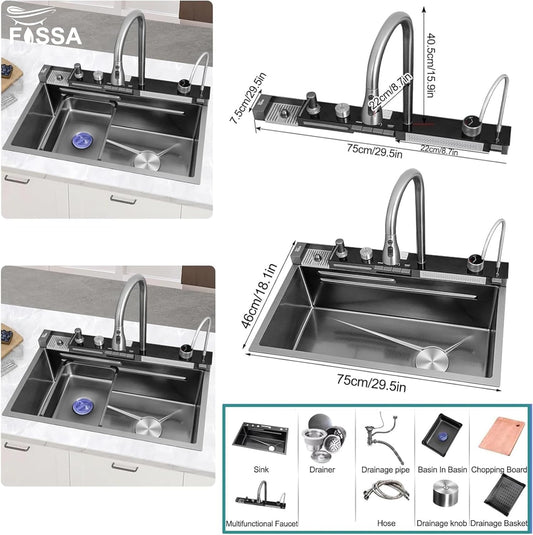(30 x 18 x 10) Inch Premium Piano Smart Kitchen Sink Black